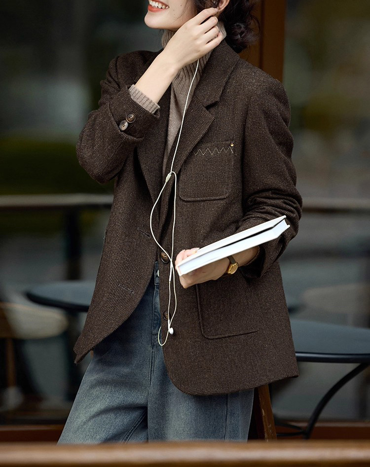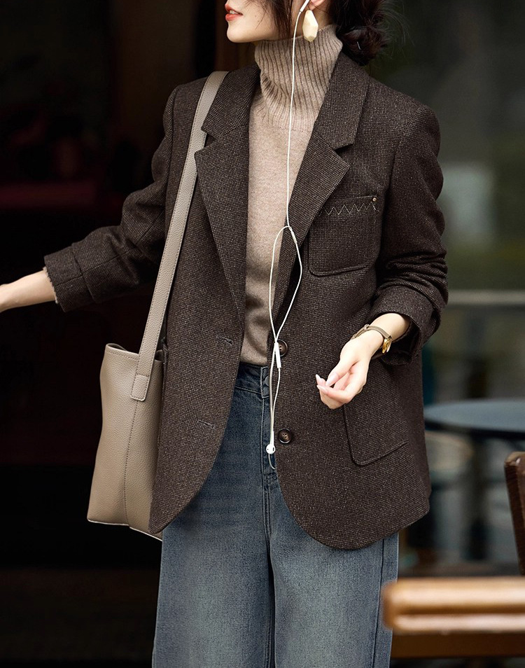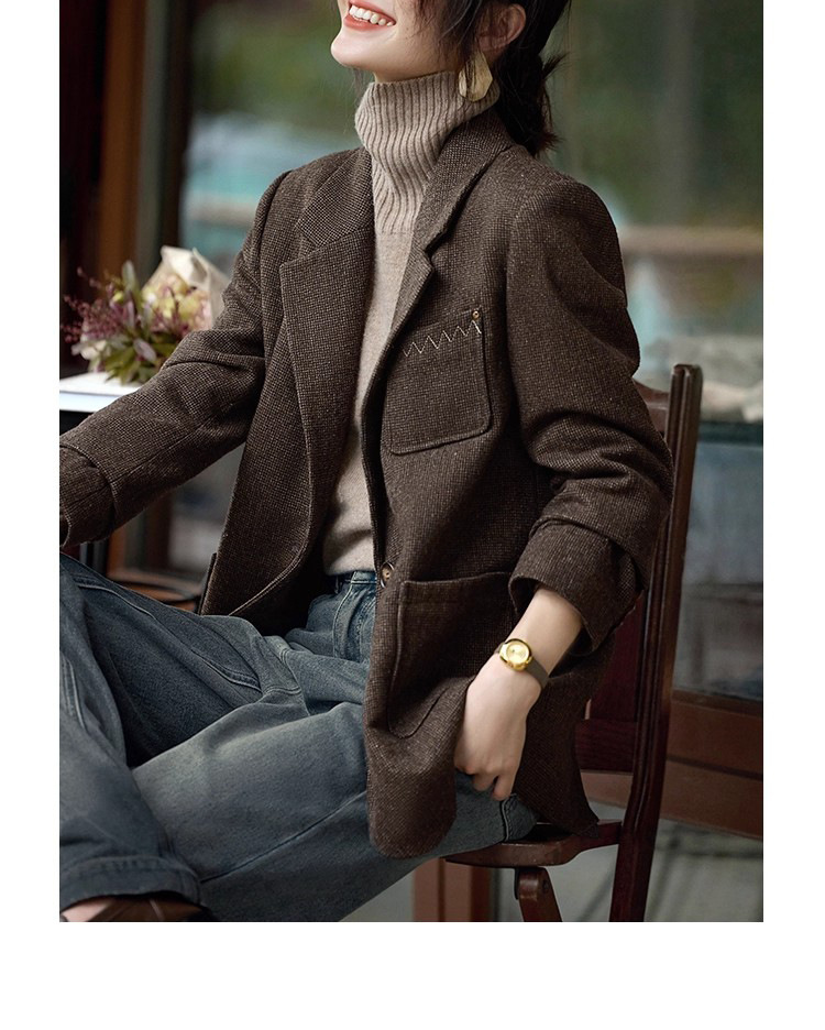 复古英伦刺绣西装外套女2025年秋冬优雅大方得体西服上衣