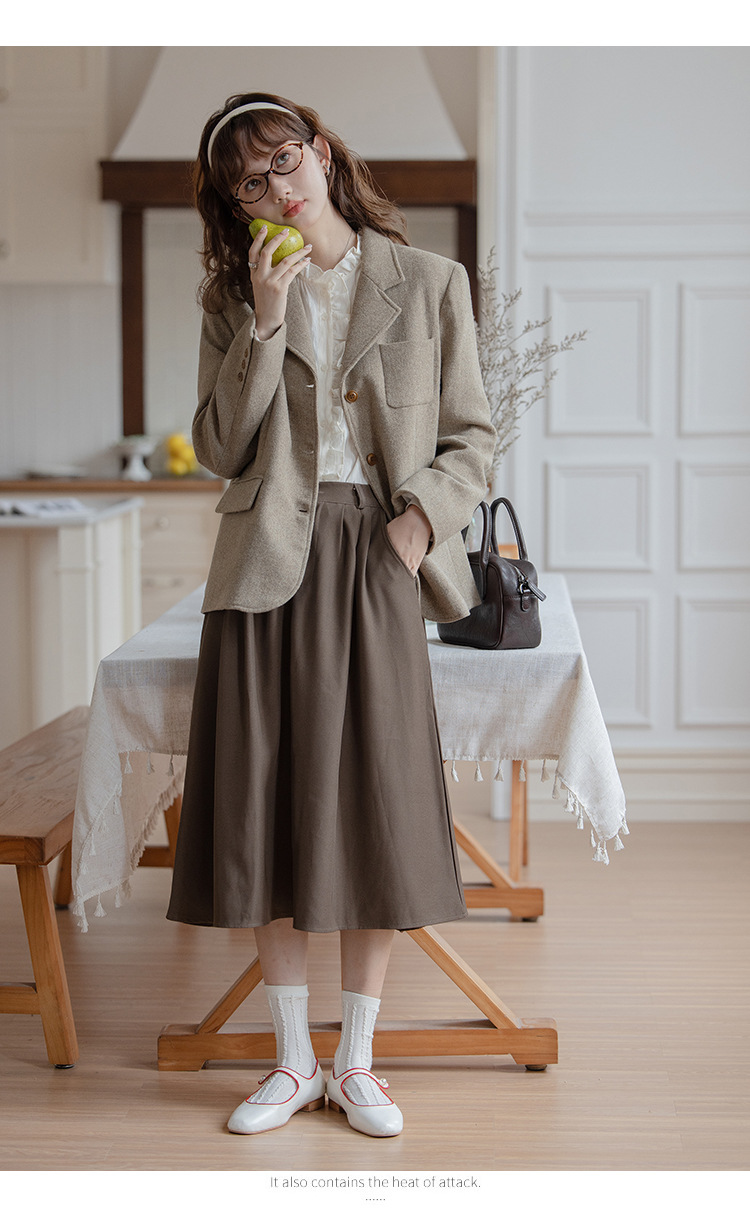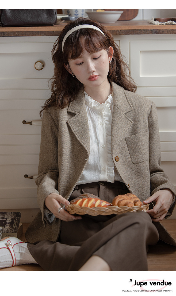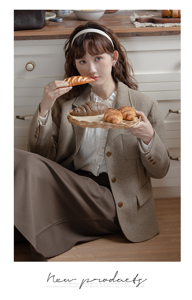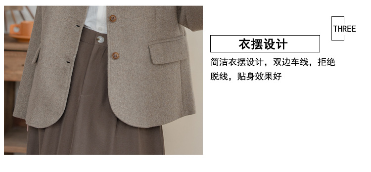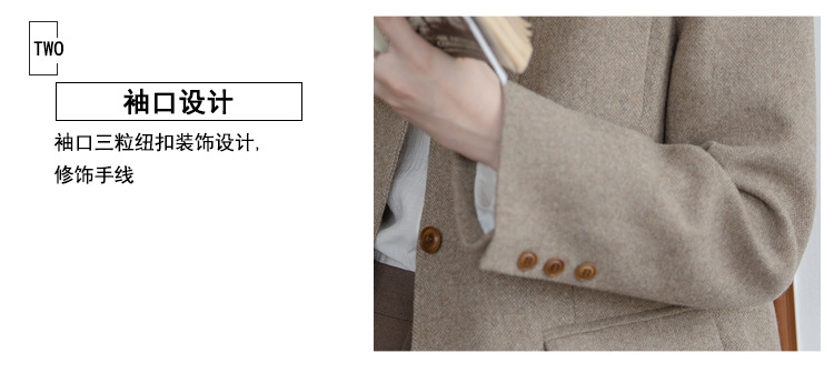 秋冬新款复古休闲毛呢西装外套女小个子宽松显瘦小西服