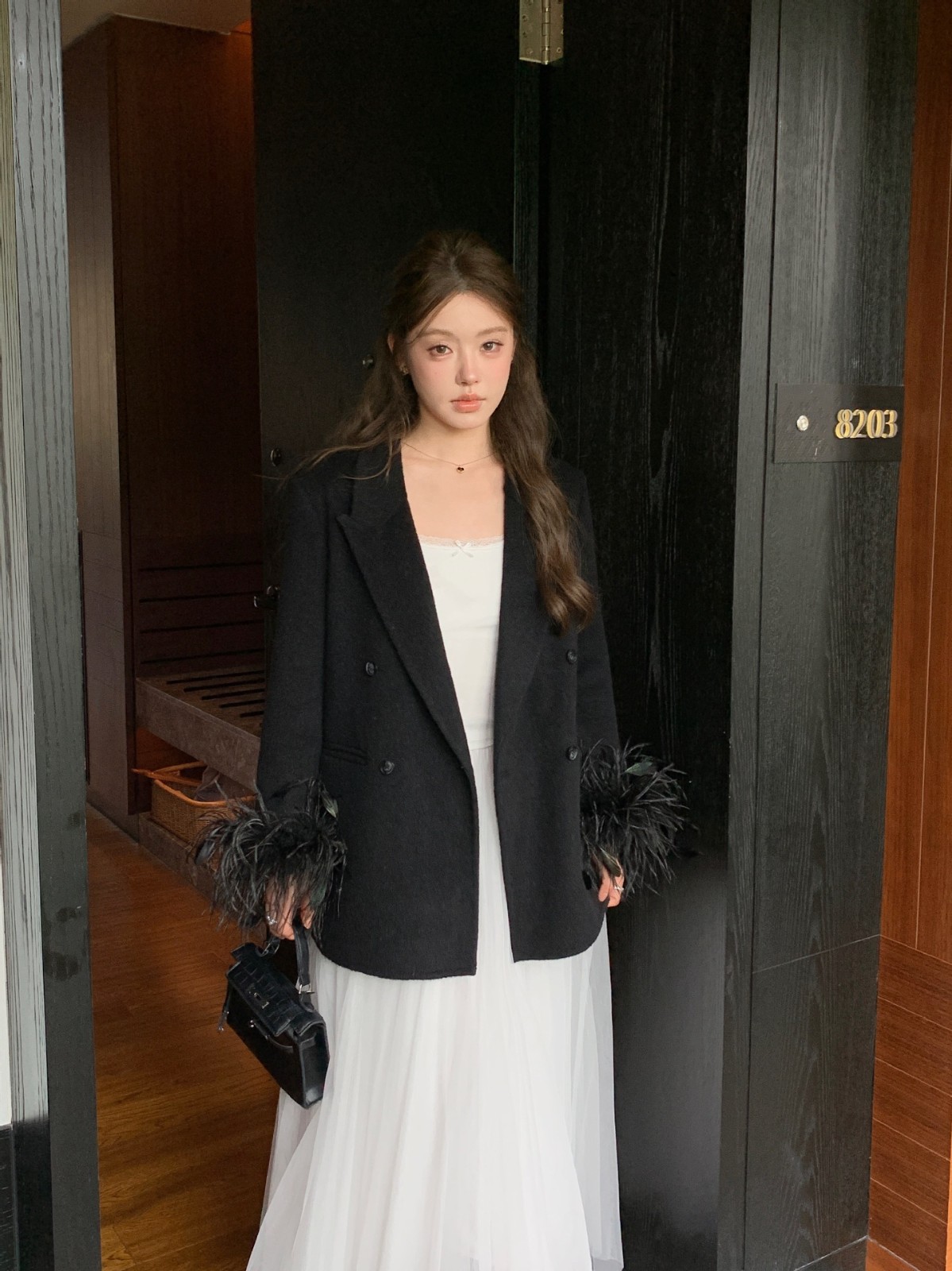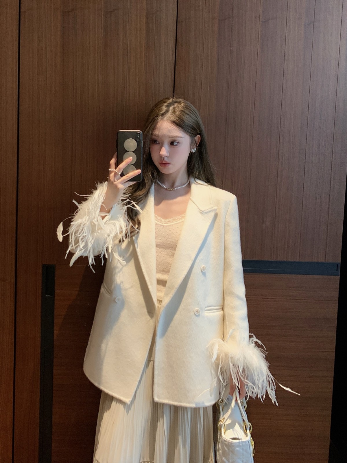 秋冬新款双面羊毛大衣韩版小西装时尚设计款毛呢外套